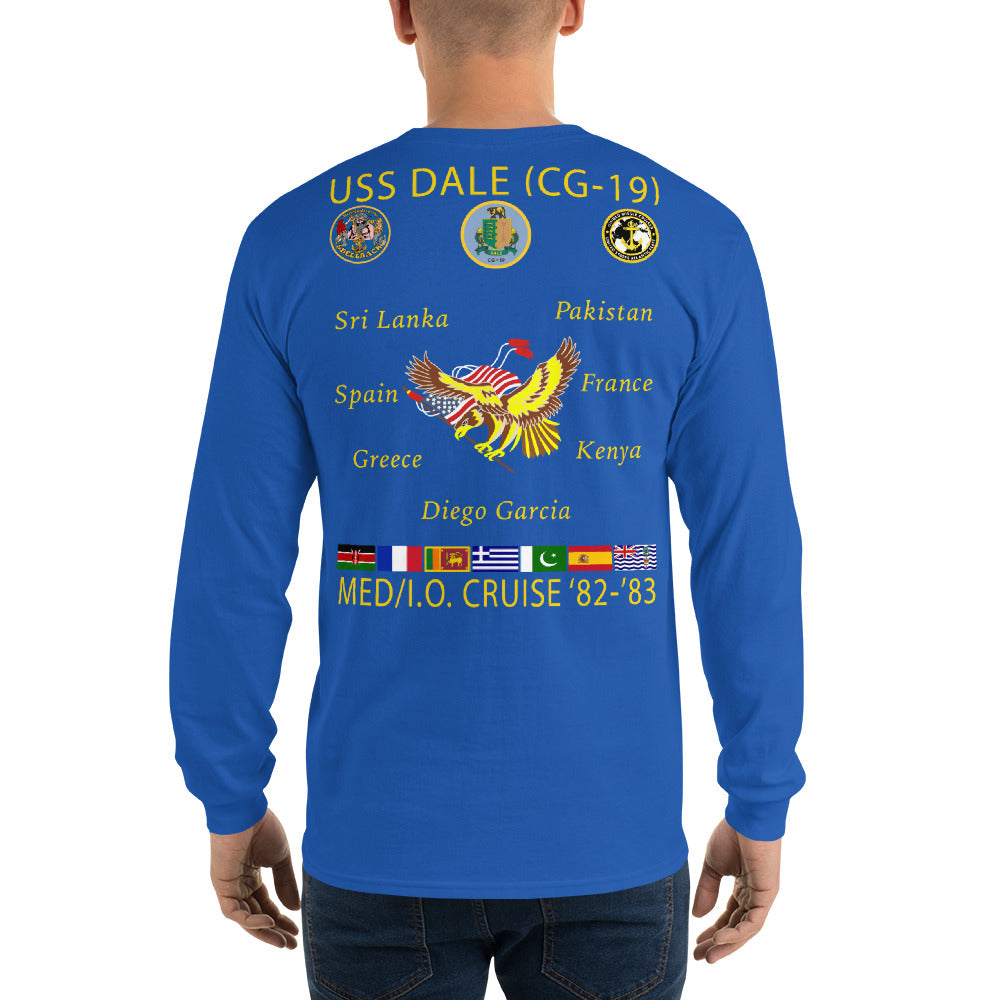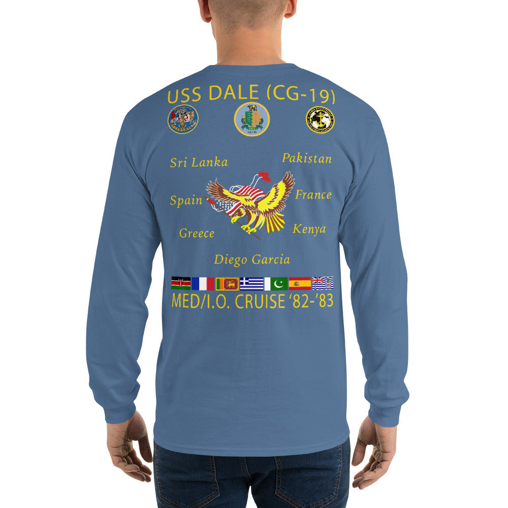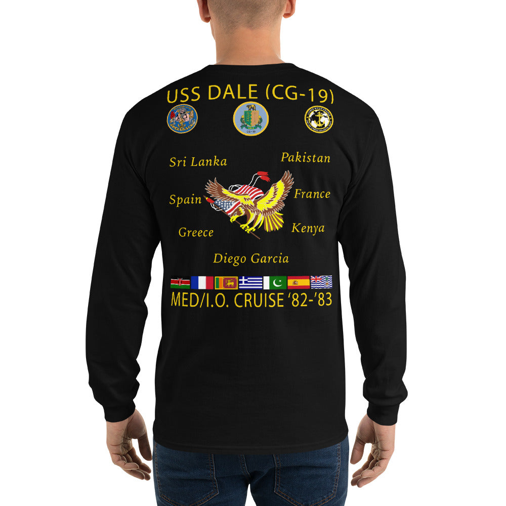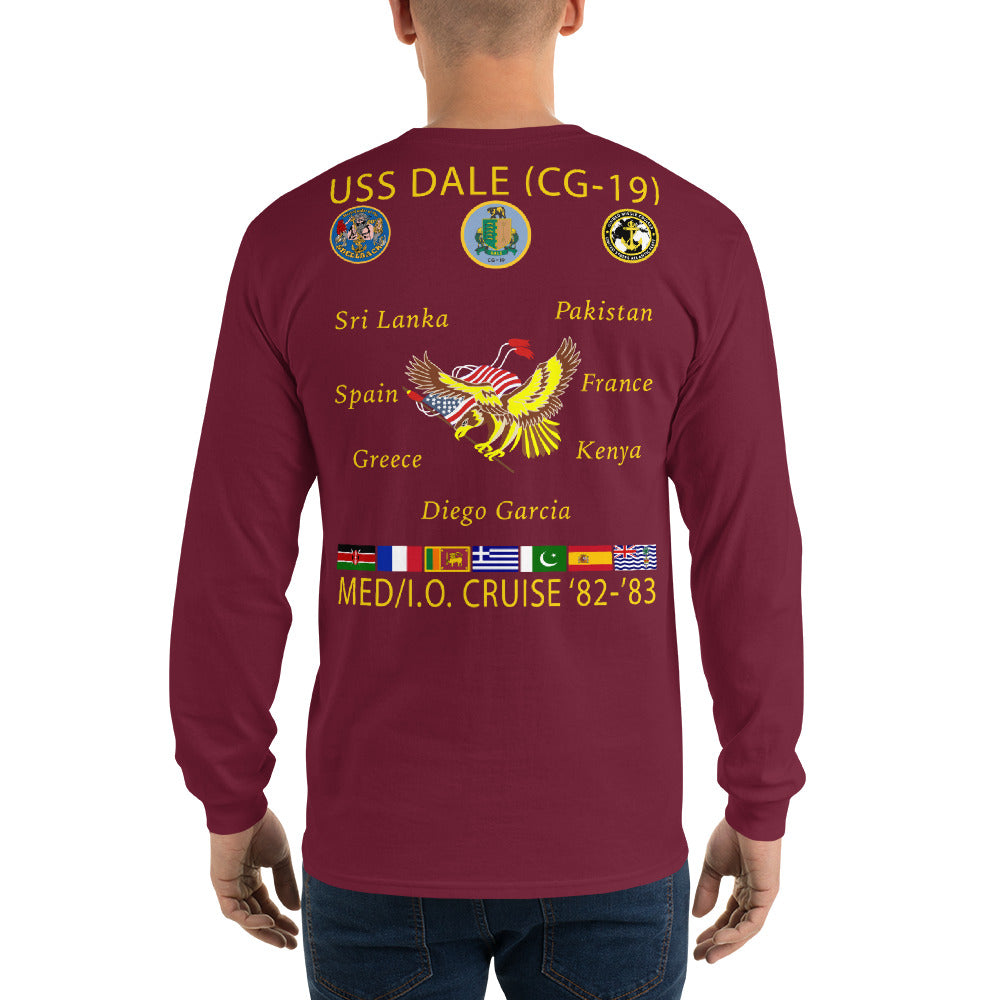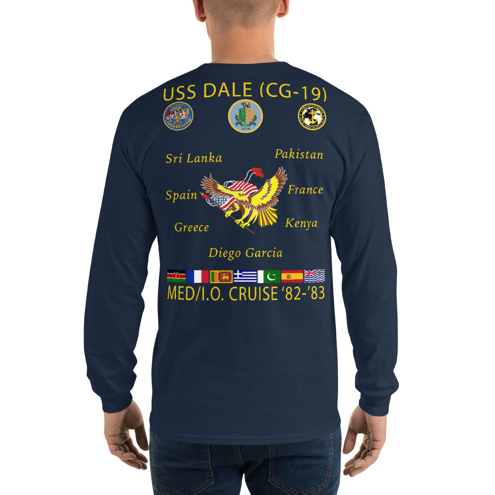 USS Dale (CG-19) 1982-83 Long Sleeve Cruise Shirt. This long-sleeve tee has ribbed cuffs and a classic-fit. It's quarter-turned to eliminate center creasing and perfect for chilly days!