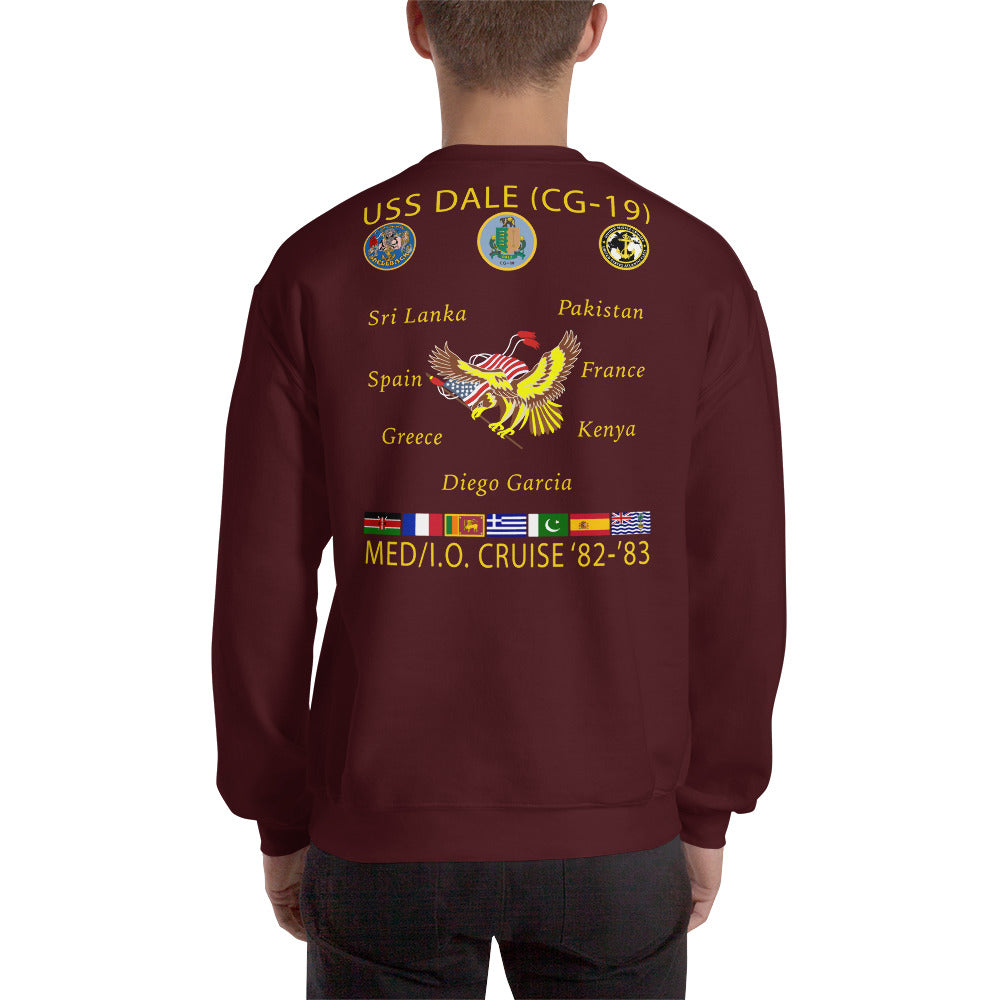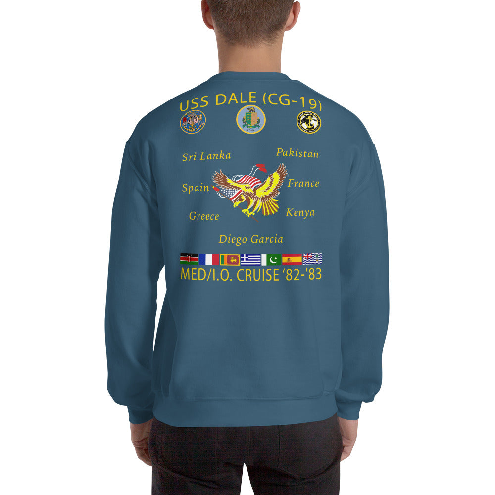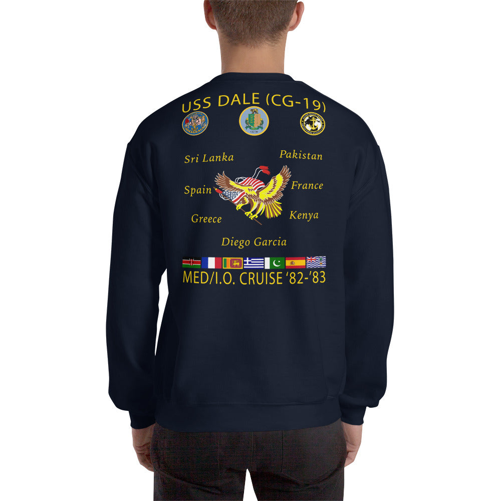 USS Dale (CG-19) 1982-83 Cruise Sweatshirt. A sturdy and warm sweatshirt bound to keep you warm in the colder months. A pre-shrunk, classic fit sweater that's made with air-jet spun yarn for a soft feel.