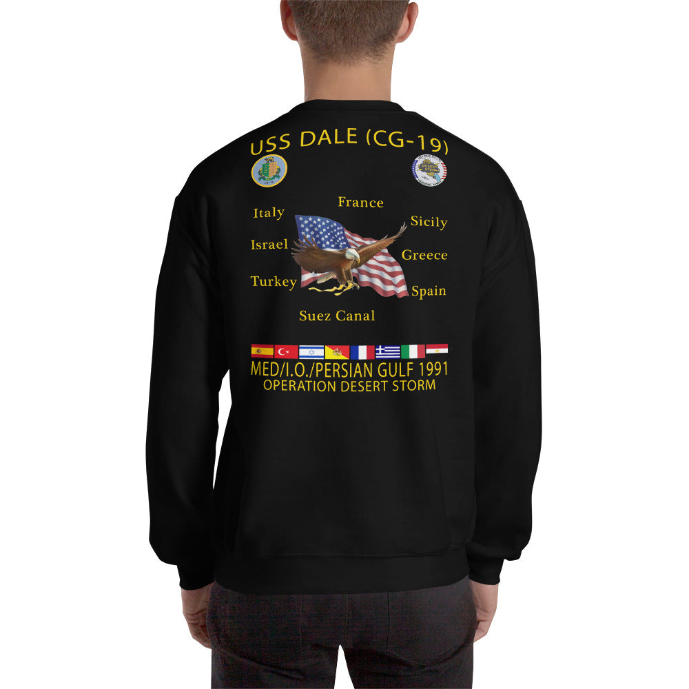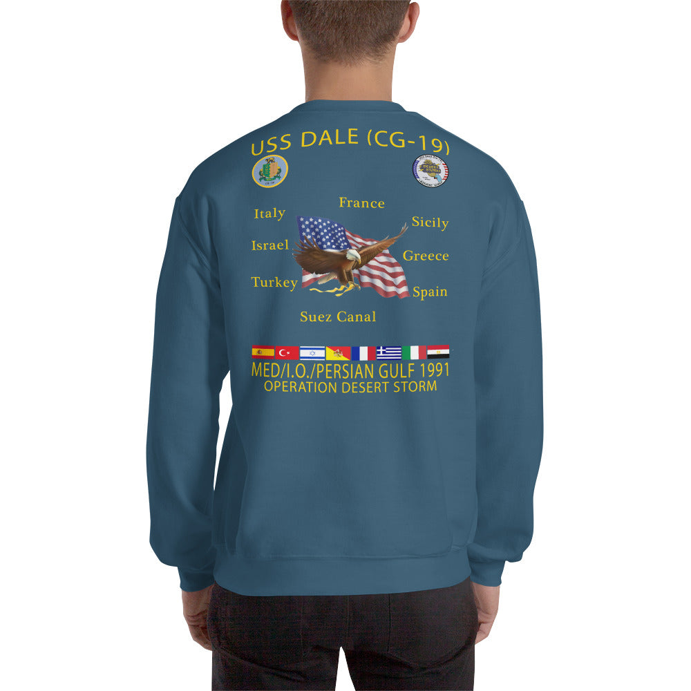 USS Dale (CG-19) 1991 Cruise Sweatshirt. A sturdy and warm sweatshirt bound to keep you warm in the colder months. A pre-shrunk, classic fit sweater that's made with air-jet spun yarn for a soft feel.